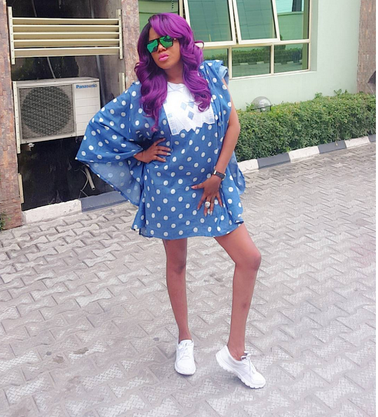 The actress is rocking a signature denim agbada by Toyin Lawani...Lovely