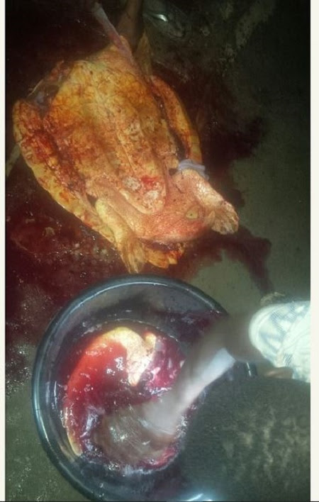 A man who shared in the feast posted the story with pictures of the tortoise as it was being slaughtered.