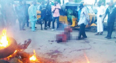 “The mob pounced on them and hacked the one that was holding a gun to death before setting him ablaze. The arm of a second suspect was cut off, with others escaping.”